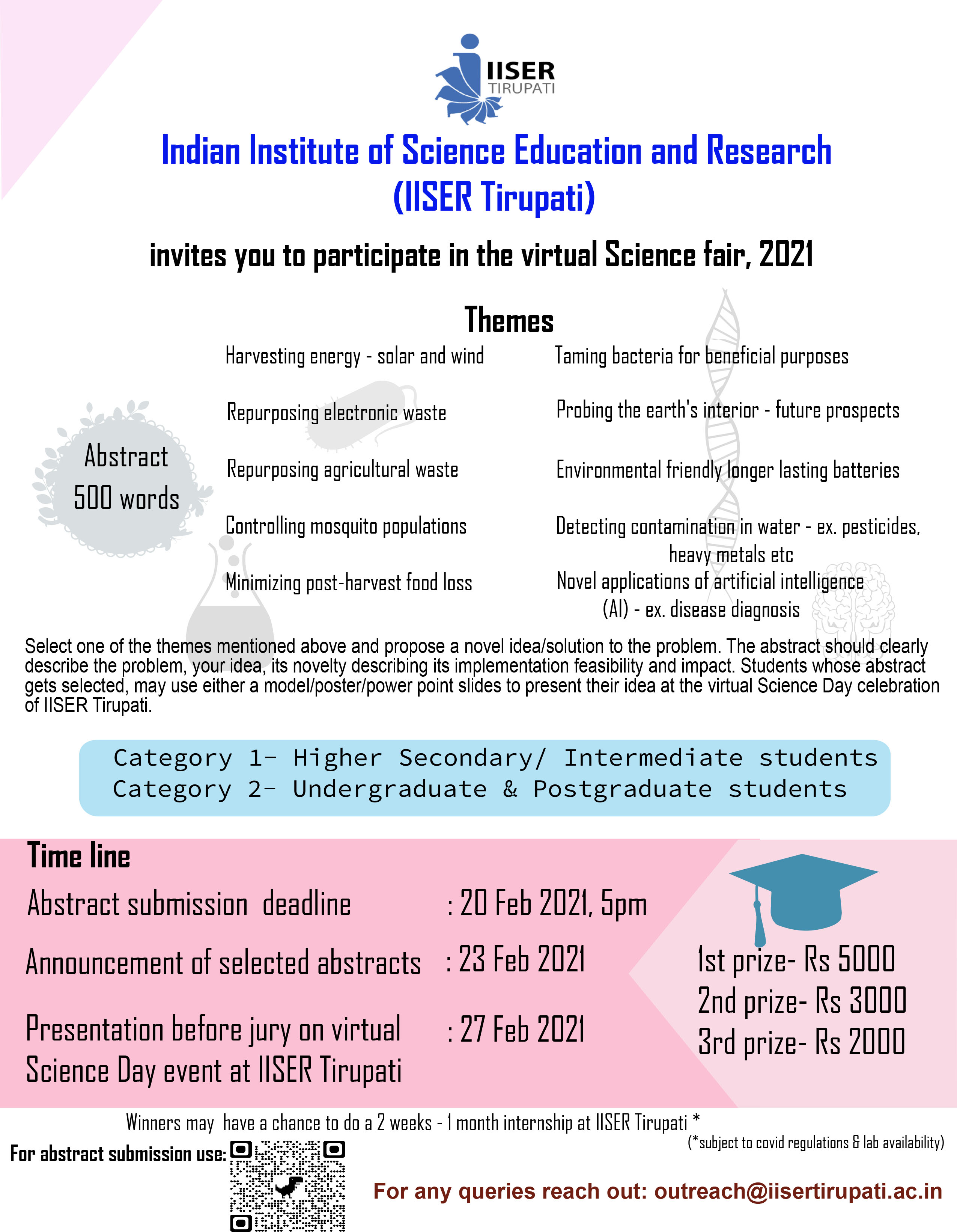 Chance to Intern at IISER Tirupati, Virtual Science fair, 2021